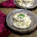 Source: food.com5 - 6 Dried Lasagna Sheets 2 Tbsp Olive Oil 2 Medium Leeks , trimmed and sliced 5 - 6 Button Mushrooms , washed, trimmed and sliced 2 Garlic Cloves, sliced ¼ Cup Fresh Cream 1 Cup Chicken Stock (see recipe here) or Vegetable Stock For seasoning: Salt and Black Pepper , as per taste Oregano , red chilly flakes Fistful of flat parsley Heat oil in a pan and saute sliced mushrooms for 5 minutes. Add garlic cloves and stir nicely. Mix in chopped leeks and pour chicken stock, season with salt and pepper. Let it simmer on low flame for 5 minutes until liquids are reduced, add cream and again let it simmer for 3 - 4 minutes. Boil water in a pan and when it is bubbling hot drop in lasagna sheets. Make sure lasagna sheets do not stick to the bottom of the pan. Once pasta is cooked drain it in colander and rinse under cold water. Pile lasagna sheets one on top of other and cut lengthwise into 2 inch wide strips. Add the lasagna strips into the simmering sauce and let it sit there for 5 minutes so that pasta absorbs the sauce. Switch of the gas and finish with oregano, chilly flakes and parsley. Serve hot with grilled toast!!