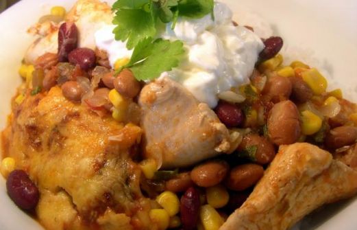 1 tablespoon olive oil 500 g diced chicken fillets 1 (420 g) can kidney beans , drained 1 (420 g) can Mexican chili beans 1 (420 g) can corn kernels , drained 1 (300 g) jar mild salsa 1 cup grated cheese 1 Heat oi [...]