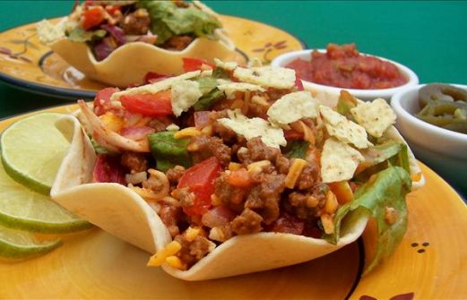 1 lb ground beef or 1 lb ground turkey 1 red onion , diced 1 (35 g) package taco seasoning 1 head iceberg lettuce , chopped 1 head romaine lettuce , chopped 1 red pepper, red, sliced 1 1/2 cups mozzarella cheese , grat [...]