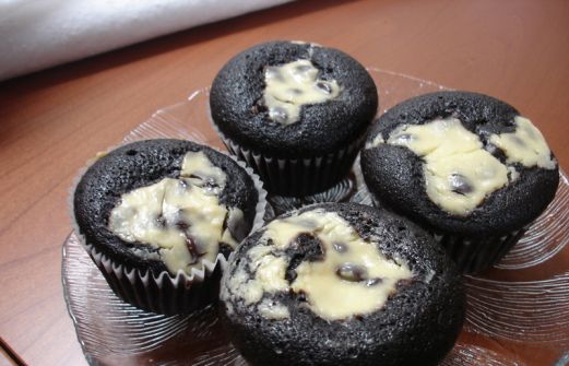 For the filling: 8 oz. cream cheese 1 1/4 cup chocolate chips 1 egg 1/3 cup sugar 1/8 t. salt For the cupcake: 3 cups flour 2 cups sugar 2 t. baking soda 1/2 cup cocoa 1 t. salt 2 cups water 2/3 cup oil 2 T. vinegar 2 t. vanilla P [...]
