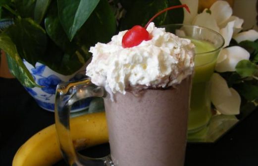 1 small ripe banana 1/4 cup skim milk or 1/4 cup 2% low-fat milk 5 maraschino cherries , drained 1 tablespoon light chocolate syrup 1/8 teaspoon coconut extract 4 cups low-fat chocolate frozen yogurt 1 Combine banana, m [...]