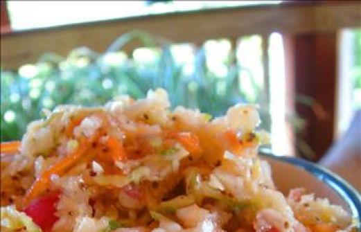 1 head cabbage , shredded 2 onions , grated 2 carrots , grated 3/4 cup sugar 1 Mix together salad ingredients. Sprinkle with sugar and let stand while making the dressing. 2 Bring dressing ingredients (except oil), to a boil. Add oil and boi [...]