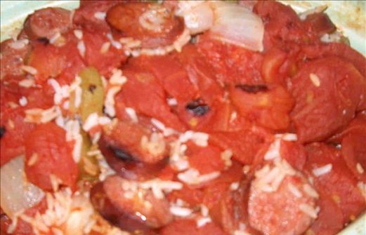 1 large green bell pepper , cut into 1/2-inch pieces 1 large sweet onion , cut into 1/2-inch pieces 1 lb kielbasa , cut into thin diagonal slices 1 (28 ounce) can stewed tomatoes 1 cup converted white rice , uncooked butter , to taste [...]