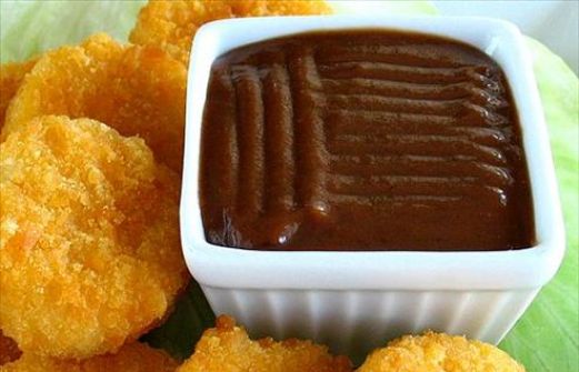 2 tablespoons mayonnaise 2 tablespoons barbecue sauce 2 tablespoons apple butter 1 Mix well and serve with chicken fingers or nuggets.