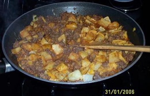 1 lb ground beef 1 potato , peeled and chopped (1/2-inch squares, like homefries) 2 cups vegetable oil or 2 cups canola oil 1/3 cup water 1 tablespoon chili powder 1 teaspoon ground cumin 1 tablespoon cajun seasoning [...]
