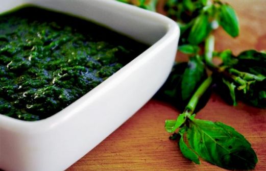 1/2 lb basil 1/2 lb spinach 2 1/2 cups olive oil 1 1/4 cups pine nuts 1 tablespoon salt 3/4 cup minced garlic 2 cups parmesan cheese , grated 1 Blend in food processor and serve on crackers or toast.