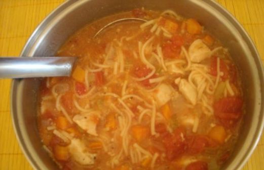 1/2 lb chicken breast , cut into chunks 1 small onion , chopped 2 stalks celery , diced 2 carrots , peeled and diced (optional) 2 garlic cloves , minced 14 1/2 ounces diced tomatoes , undrained 14 ounces low sodium chicken br [...]