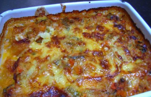 1 (10 ounce) can cream of onion soup 1 cup milk 1 (32 ounce) package frozen diced potatoes (hash browns) 1 (16 ounce) package frozen mixed vegetables 2 cups shredded cheddar cheese 1 Stir together soup and milk in a large mixing bowl. S [...]