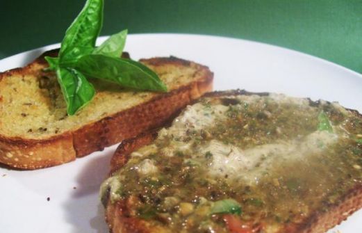 4 -6 tablespoons butter 2 tablespoons pesto sauce 3 tablespoons parmesan cheese (or your favorite cheese) 1 garlic clove 2 teaspoons italian seasoning (optional) pepper 1 Whip ingredients together in food processor. 2 Sprea [...]