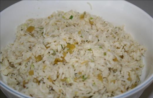 1 cup uncooked rice 2 cups chicken broth 1 (4 ounce) can chopped green chilies 1 small onion , diced 1 teaspoon oregano 1/2 teaspoon salt 1/2 teaspoon cumin 3 green onions , sliced 1/3 cup fresh cilant [...]