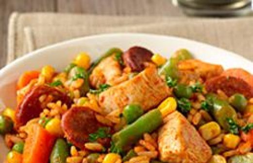 1 tablespoon vegetable oil 1 pound boneless, skinless chicken breasts, cut in bite-sized pieces 2 links chorizo sausage, thinly sliced 1 (14 ounce) bag Birds Eye® Recipe Ready Mixed Vegetables 1 (1 ounce) package taco seasoning blend [...]