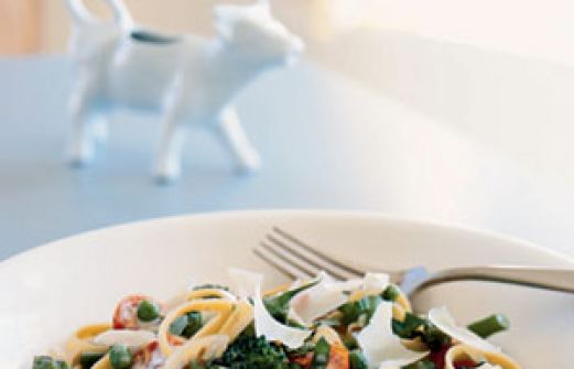 2 cups green beans, trimmed and halved crosswise 2 cups broccoli florets 1/2 cup (1-inch) slices asparagus (about 2 ounces) 6 ounces uncooked fettuccine 1 tablespoon olive oil 1 cup chopped onion 2 teaspoons minced fresh garlic 1/8 teaspoon cr [...]