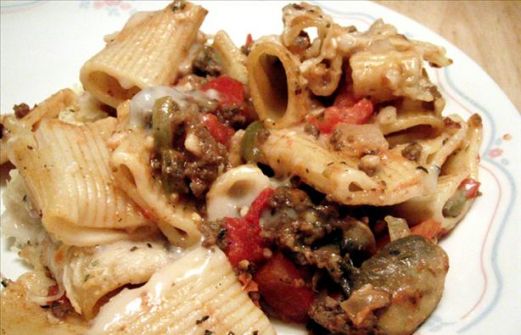 1 cup chopped onion 1 cup chopped green pepper 1 tablespoon butter 1 (28 ounce) can Tomatoes , cut up,don't drain 1 (4 ounce) can mushroom pieces 1 (2 ounce) can sliced ripe olives 2 teaspoons oregano 1 lb groun [...]