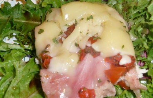 3 boneless skinless chicken breasts , and pounded thin 6 slices ham 1 medium Tomato , seeded and chopped 1 teaspoon oregano 1/3 cup dry breadcrumbs 3 tablespoons mozzarella cheese , shredded 2 tablespoons minced parsley [...]