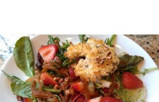 8 cups baby spinach, rinsed and dried 1 tablespoon butter 1 clove garlic, crushed 1/4 cup plain bread crumbs 6 ounces goat cheese, sliced 8 tablespoons balsamic vinegar 8 tablespoons olive oil Arrange the s [...]