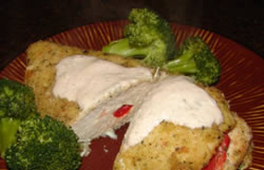 4 skinless, boneless chicken breasts 1 (12 ounce) jar roasted red bell peppers 2 cups bread crumbs 3 tablespoons vegetable oil 1 cup sour cream 1/2 cup feta cheese With a very sharp knife, cut pockets into the thickes [...]