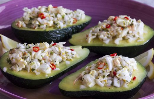 Defrost the shrimp . Peel and devein. To prepare the marinade, combine the lime zest and juice, the orange zest and juice, olive oil, onion, chili, mint, coriander and chives. Cut the avocados in half and remove the pit. Scoop out some of the flesh so there is room for the filling. Fine [...]