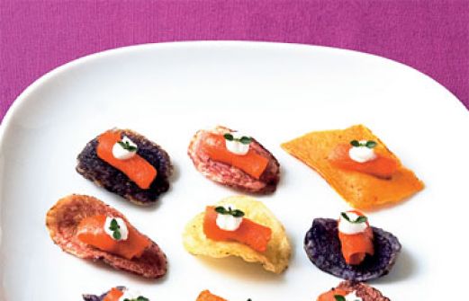6 slices of smoked salmon 12 large potato chips 2 tbs crème fraîche (or sour cream) Chive, thyme or dill for decoration print a shopping list for this recipe view wine pairings add ingredients to shopping list 1. Divide each salmon slice in two, roll them t [...]
