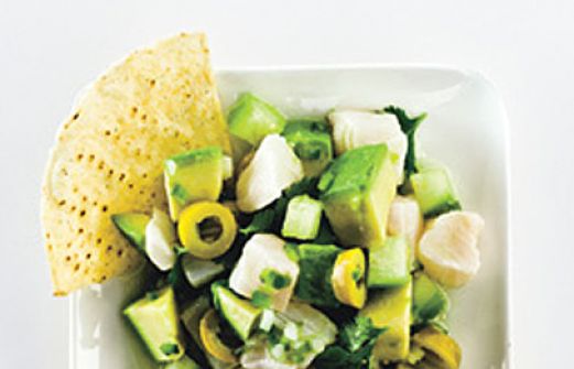 1 pound fresh Pacific halibut or other firm-fleshed fish 1 teaspoon kosher salt 3 tablespoons fresh lime juice 2 ripe avocados, peeled and pitted 3/4 cup green olives, sliced 1/2 cup tomatillos, diced 1/4 cup onion, very finely chopped 1/4 cup fresh cilantro leaves 1 jalapeño, [...]
